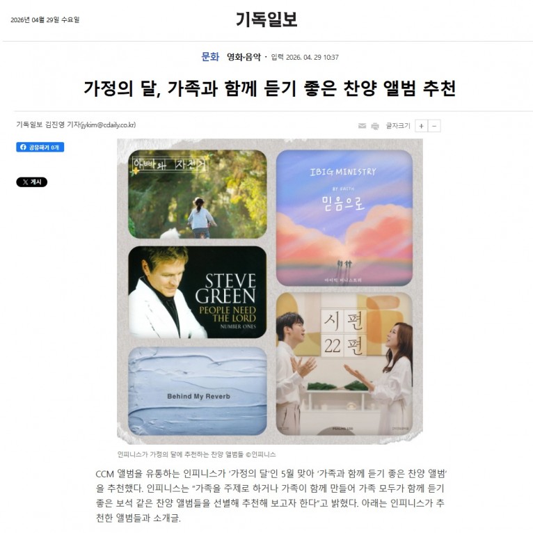 뮤직타임 [기획기사] 가정의 달, 가족과 함께 듣기 좋은 찬양 앨범 추천(기독일보)
