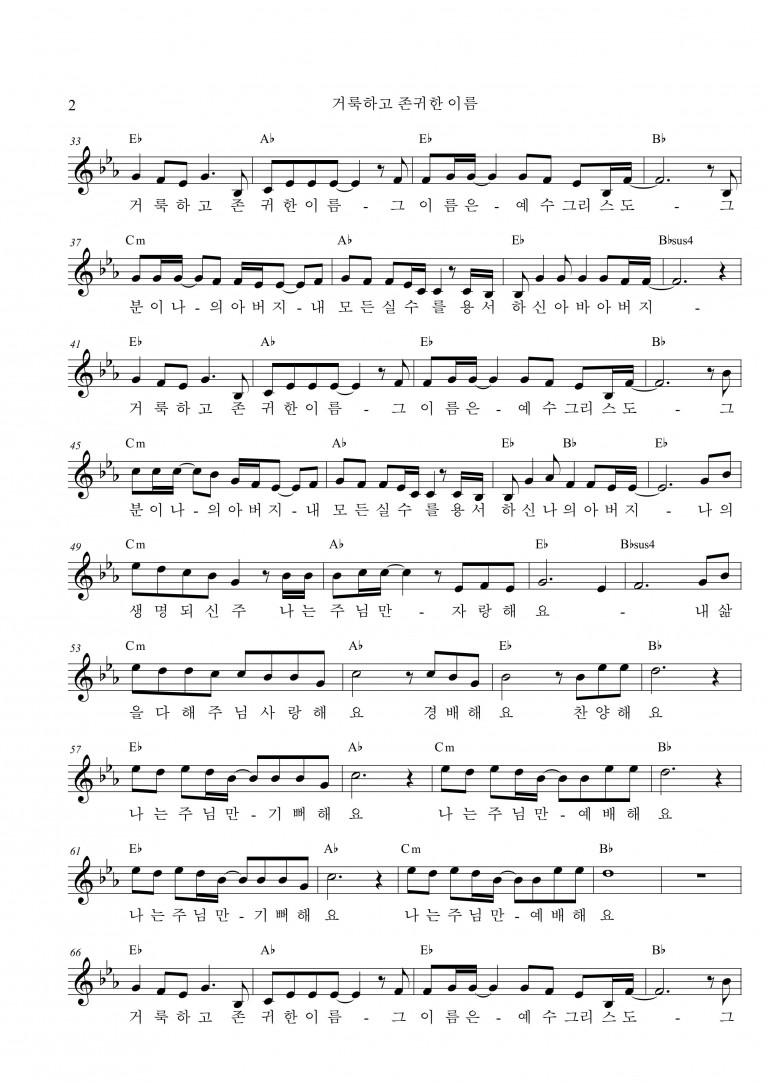 뮤직타임 [MV,악보] 거룩하고 존귀한 이름 - 오혜진
