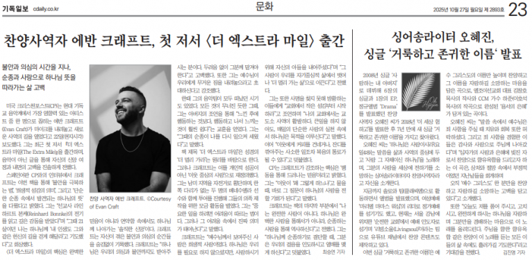 뮤직타임 [기사] 싱어송라이터 오혜진, 싱글 ‘거룩하고 존귀한 이름‘ 발표(기독일보)